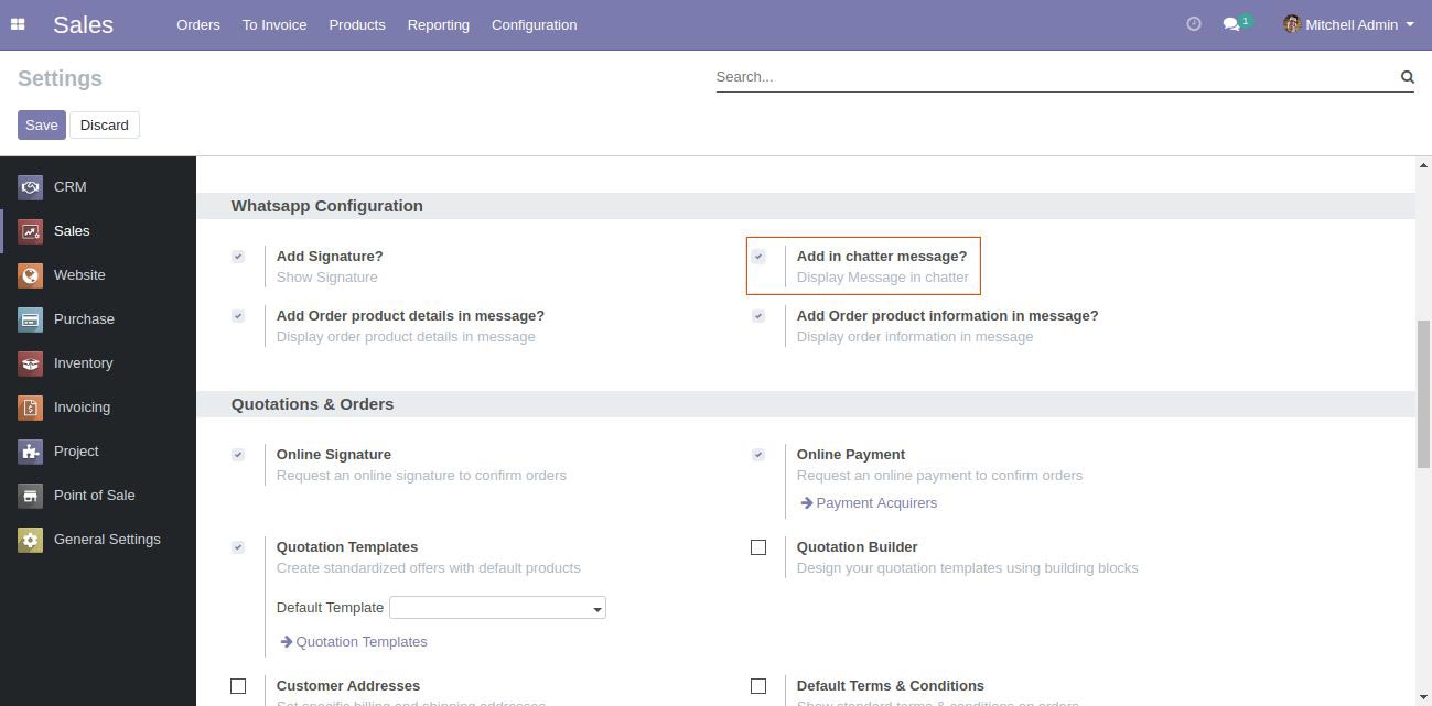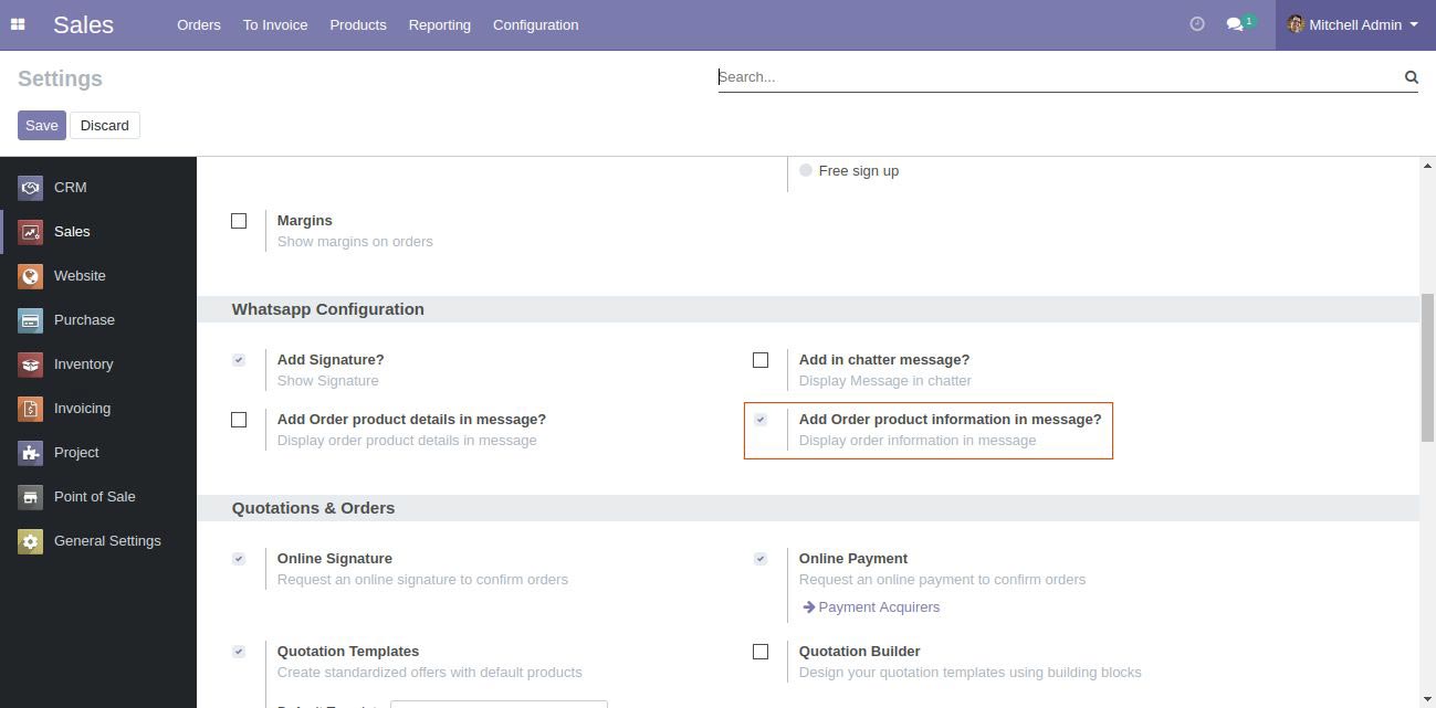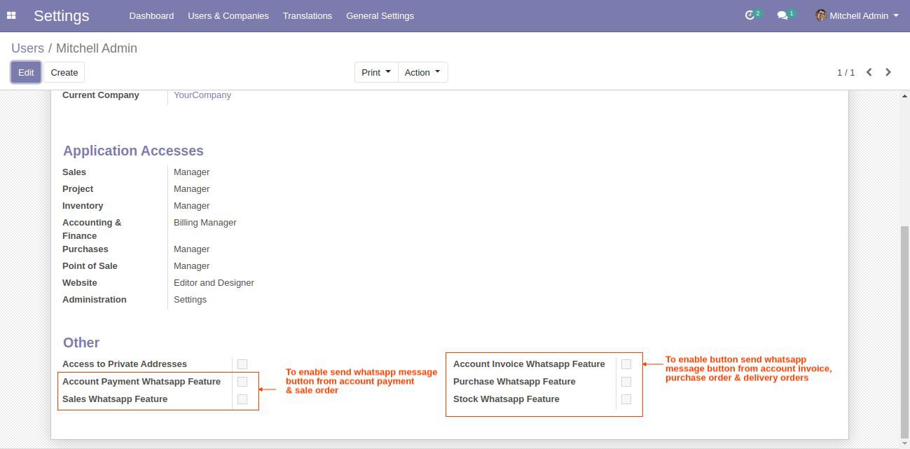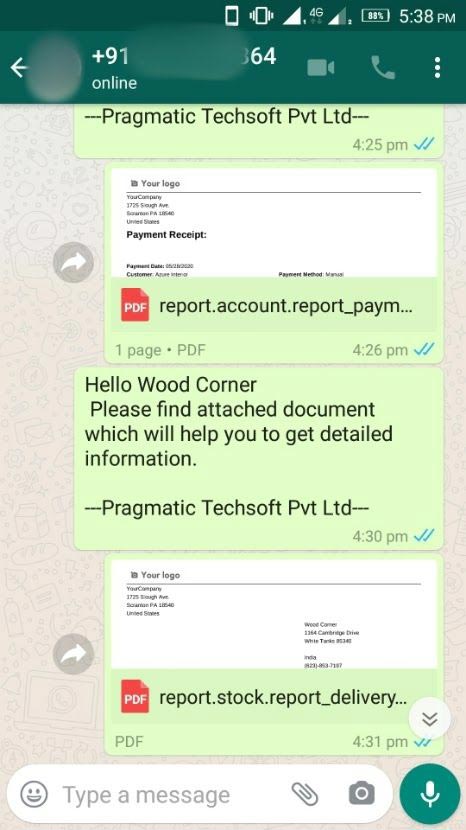 Client ExperiencesClient satisfaction is our top priority, which is why SMB, enterprise, and startup clients continue to work with us. Here's what they had to say about Pragmatic Techsoft:Dear Pragmatic, Thank you very much for serving my questions My English is very poor, you and your team were very patient to communicate with me and help me solve the problem, I can never thank you enough..(*^_^*)Themis ZhangFJDynamicsService was good with Pragmatic, and there were no issues faced with Whatsapp Odoo All in one Integration Module.Aravinthu DurairajanTechnical Manager at Maxvue visionThanks a lot for your time, the call with Pragmatic was great and very helpful.Sayed Hassan Al MosawiThe service was good with Pragmatic, no issues and yes Odoo Whatsapp Marketing Module and customisation helped us to make work life at ease.Mohammed IbrahimPragmatic whatsapp Odoo All in one Integration is working fine, and working all good for the purpose we are using it for. Hammond Richard JrRock - uniqueOverviewOdoo WhatsApp Central All-In-One is a comprehensive app suite developed by Pragmatic that helps you manage your entire business functions inside Whatsapp Messenger. There are powerful modules integrated into a single Odoo Whatsapp module package that automates core business functions, viz., marketing, payments, sales support, live chat, eCommerce shopping, product catalog, and customer service. It is primarily a multi-functional Odoo WhatsApp Integration that is essentially an excellent way ODOO WHATSAPP CENTRAL ALL-IN-ONE FEATURES Robust, Reliable, and Server-based Payment Reminder Messages Link Messages with POS Odoo Website Sign-up Notification Enable WhatsApp Messages for Sales Orders, Purchase Orders, Delivery Orders, and Invoices One Account Per Company Comparison TableFeaturesPragmaticSofthealer TechnologiesGTICA.C.AAscents EntrepreneursTask creation notification to the assigned user (in project management)Add signature to the project task detailsDisplay message in the project task message chatterChanging the task status to ‘done’ upon confirmation by the assigned userSend payments reminderSend a message when a user signs up on the websiteSend message to single contacts with multiple attachmentsSend message to multiple contacts with multiple attachmentsUser Permission Access Control to enable sales orderUser Permission Access Control for purchase orderUser Permission Access Control for delivery ordersSend order information from the sales orderSend product details from the sales orderAdd signature in the sales orderDisplay message in the sales order message chatterSend order information from account invoice, account payment, & credit notesSend product details from account invoice, account payment, & credit notesAdd signature in the account invoice, account payment, & credit notesDisplay message in the account invoice, account payment, & credit notes message chatterSend order information from the purchase orderSend product details from the purchase orderAdd signature in the purchase orderDisplay message in the purchase order message chatterSend order information from the delivery orderSend product details from the delivery orderAdd signature in the delivery orderDisplay message in the delivery order message chatterSend message from the ‘point of sale’ to the customerLead creation notification to the salesperson (in CRM)Add signature in the CRMDisplay message in the CRM message chatterHow does it work?Configuration It is challenging to get a sign-up for ‘WhatsApp for Business’ directly and get access to API as the sign-up process takes too long. Hence, it is better to sign-up for a third-party WhatsApp API service as Chat API. Also, Selenium could be used for free but it is not robust and seems unreliable when it comes to handling large volumes of load. Hence, you need to sign-up for a Chat API account exclusively on https://bit.ly/3MFXxY0 Once you sign-up, you will get a WhatsApp Instance ID & WhatsApp Token.Go to General Settings and Paste the credentials for Whatsapp Instance Id and Whatsapp token copied from whatsapp chat api.Click on Get QR Code & scan QR code from mobile Whatsapp Web.After you scan QR code from your mobile is authenticatedSend messages to ContactsSend messages with multiple attachmentsSend messages to multiple customers using Send Whatsapp message menuProvides Access Control Permission of WhatsApp message to all appsAdd signature to WhatsAppGo to Settings -> User -> PreferencesHere we can add user signatureSales order configurationGoto Sales -> Configuration -> SettingsAdd signatureSignature will get added to the messageAdd product information in the message:Product information is added to messageProduct Order details in messageProduct Order details added to messageAdd to chatter messageWhatsapp message sent successfully and will be tracked in message chatter with attachmentAccounts Invoice configuration:Goto Invoicing -> Configuration -> SettingsAdd signatureSignature is added to messageAdd Product information to the messageProduct information will be added to messageAdd Product Order details to messageOrder product details added in messageAdd to chatter messageWhatsapp message sent successfully and will be tracked in message chatter with attachmentSimilarly for Account Payments:Similarly for Credit Notes:Delivery order configuration:Goto Inventory -> Configuration -> SettingsAdd signatureSignature will get added to messageMark Add product information in the messageProduct information will added in messageMark Order product details in messageOrder product details added in messageMark Add in chatter messageWhatsapp message sent successfully this will track in message chatter with attachmentFor purchase order configuration:Goto Purchase -> Configuration -> SettingsSignature will added in messageMark Add product information in the message:Product information will added in messageMark Order product details in messageOrder product details added in messageMark Add i